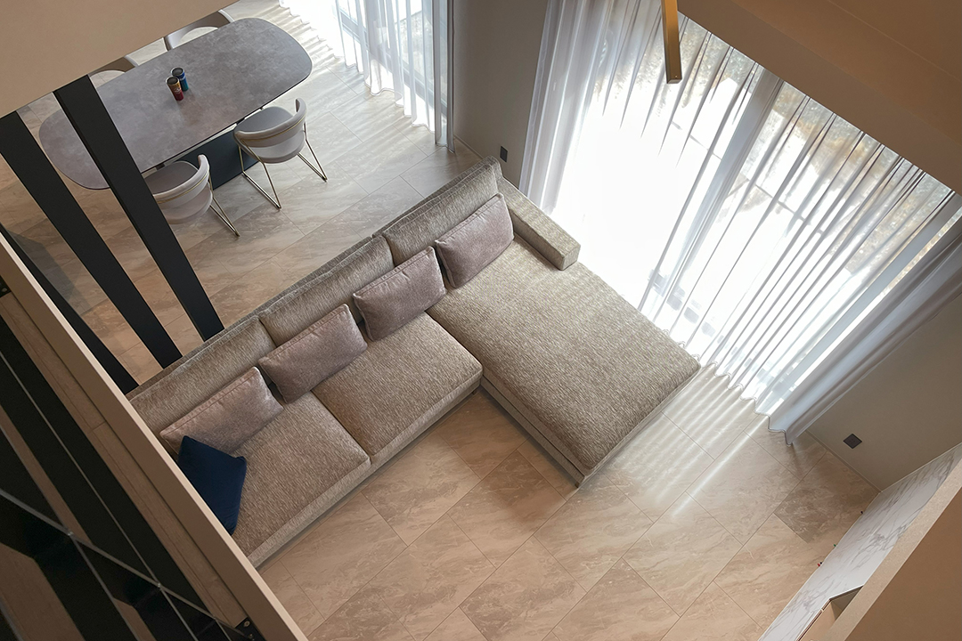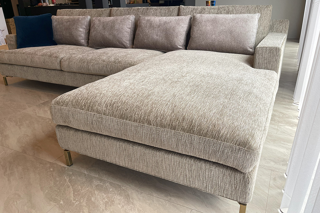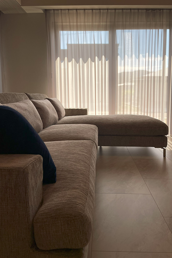 やや柔らかめの座り心地、沈み込みのあるフェザータッチがお客様の目に留まったのもお決めになられた理由の一つでした。
