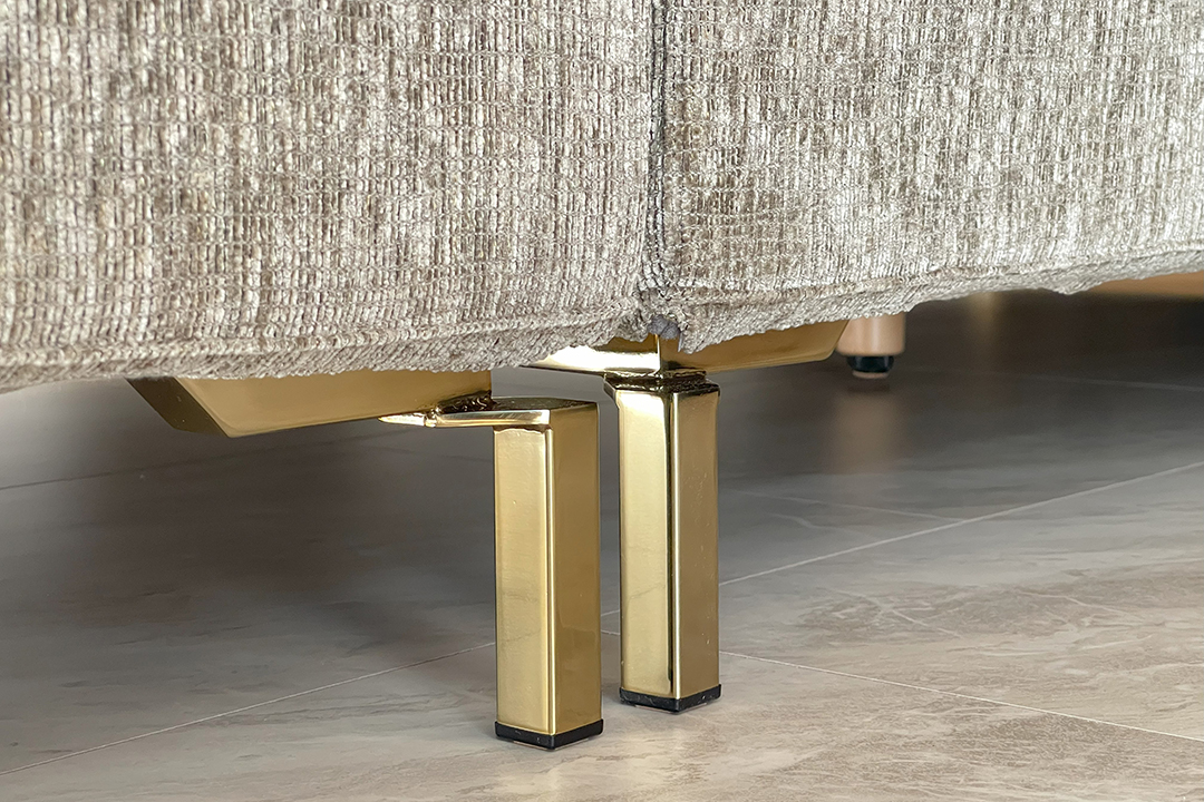 キッチンカップボードや照明など、アクセントにゴールドを取り入れられており、脚部オリジナル塗装のご提案にご興味をお持ちいただきました。