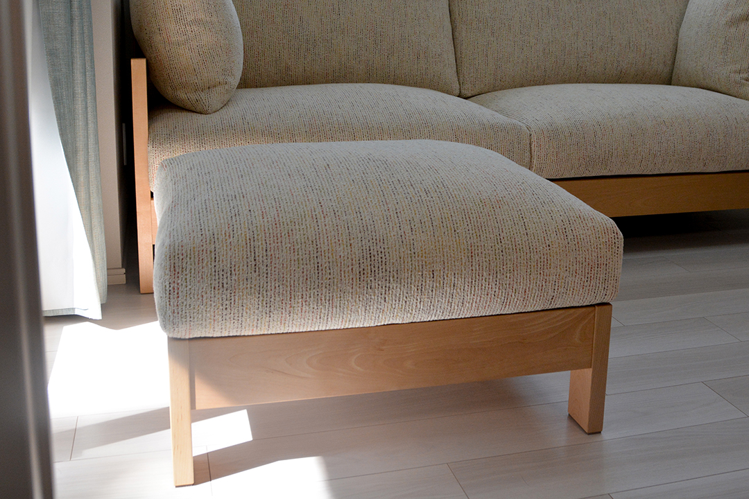 くつろぎのソファのそばには、オットマンもご用意しました。