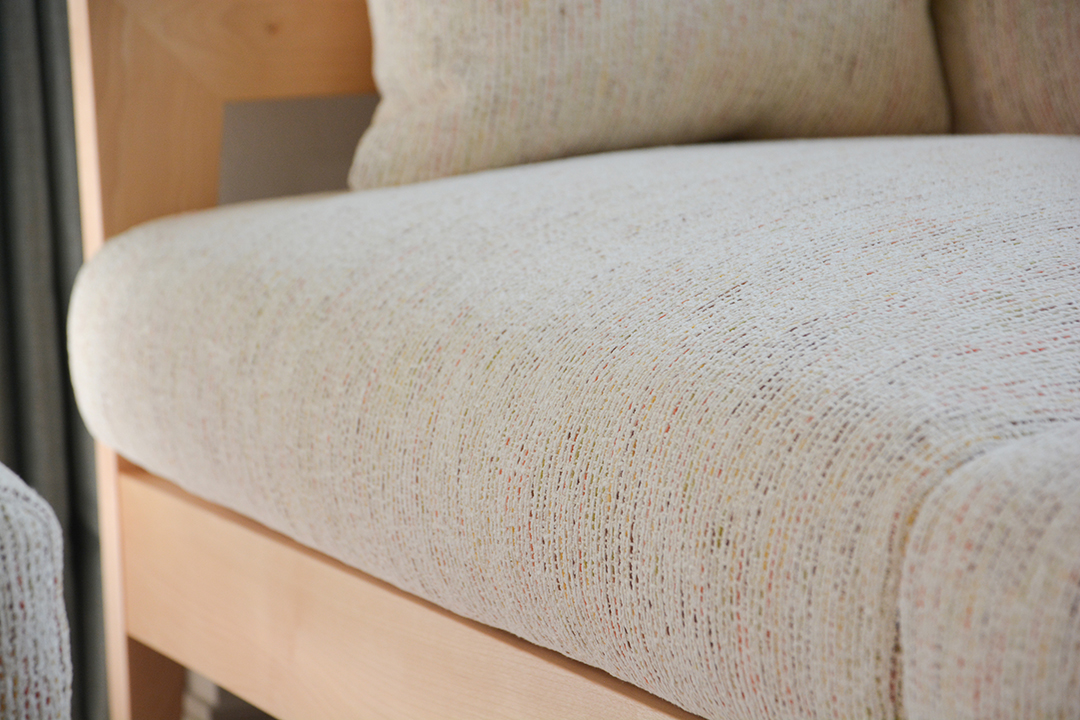 張地は様々にご検討頂いたものの、TRES京都店に展示されているsofa RFにも張られていた、ESS-WH(ホワイト)[E-type]をお選びいただきました。