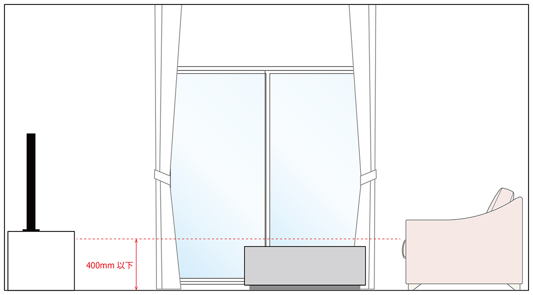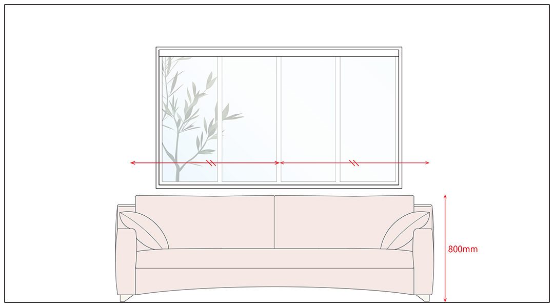 特に掃き出し窓以外の窓が設置されている場合、平面図だけでは不十分。「ここに窓があります」だけでなく立面図や実際に計測するなど床から窓、大きさ、壁との距離など位置関係を明確に。ソファが窓を遮らないように配置することをイメージしましょう。