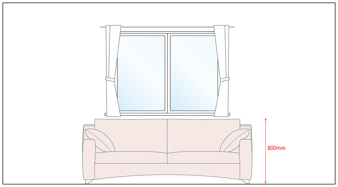 ウインドウトリートメントとしてカーテンをダブルで合わせる場合は、カーテン溜まりのスペースはソファと摩擦しないように。窓枠よりも長めにとられたカーテン丈とソファの間も空間ができるように配置します。