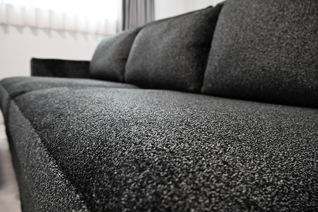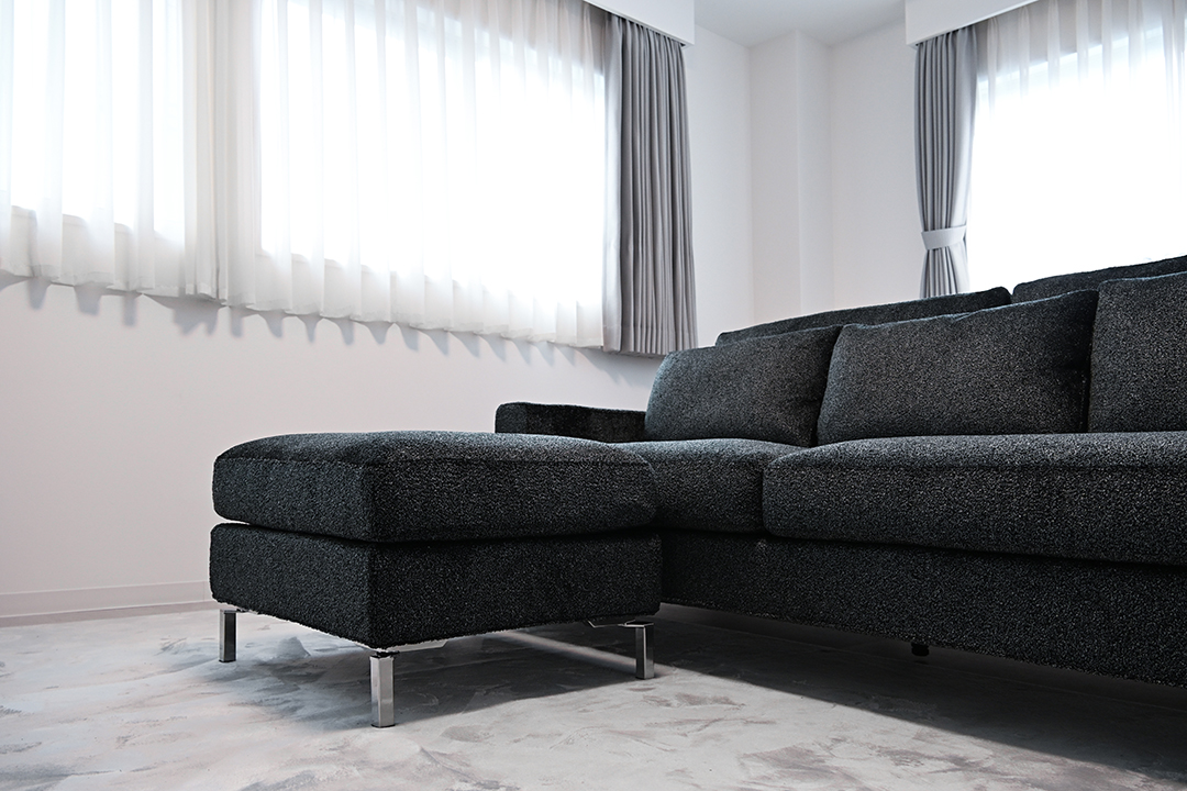 グレーを混ぜて表情を出した、毛足の長いブラックのファブリックを選ばれました。