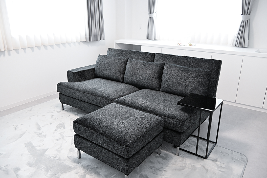 ソファはワンアームでご用意しましたので、サイドテーブルを横に差し込むことも可能です。