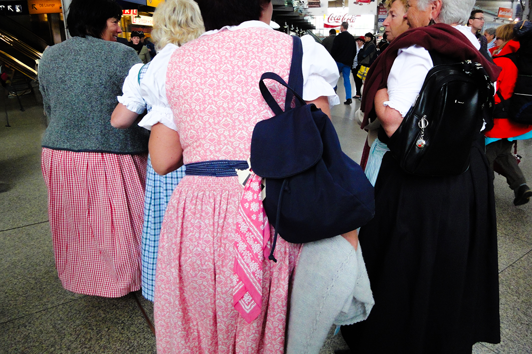 駅から会場に向かう道程には、開催地バイエルンの民族衣装である、レーダーホーゼンとディアンドルを着た人が見かけられます。