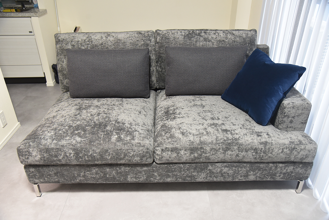 最終的にsofa【GRVA】のすわり心地を気に入られてワンアーム2P(W1740)に決定。