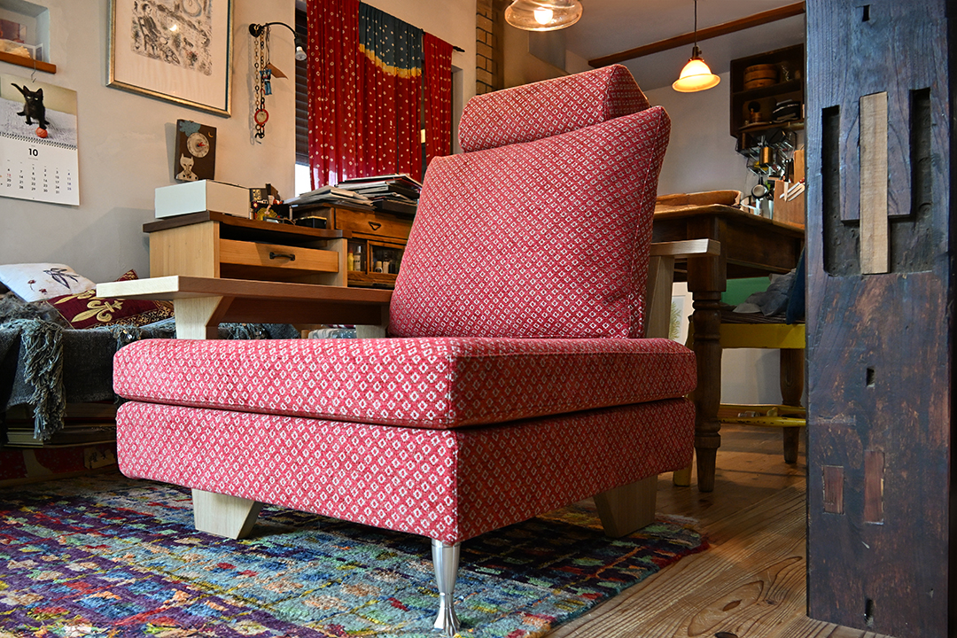 こだわりのインテリアの一つとして迎え入れられたのは、アームがテーブルになった木フレームデザインの、sofa 【TB-M】。