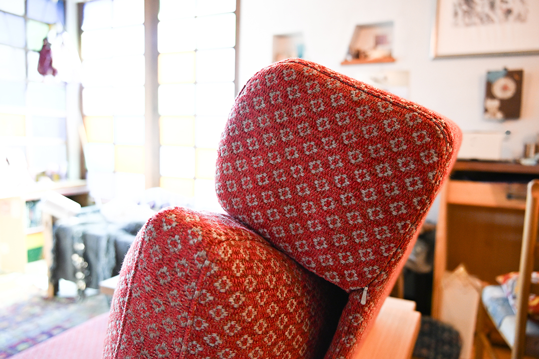 張地は、木フレームとの相性が特別かわいらしい、小花風の柄のテキスタイルを選択。