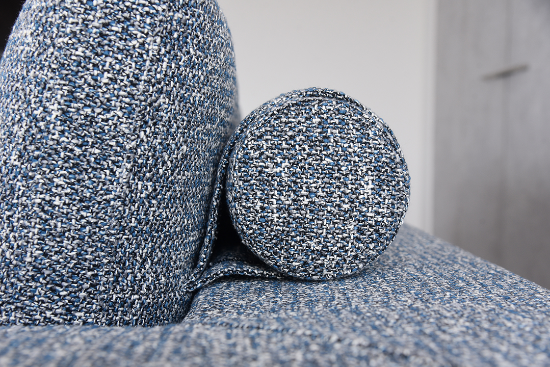 近くで見るとブルーが鮮やかに見えますが、ソファ全体に張るとブルーの主張が強くなく