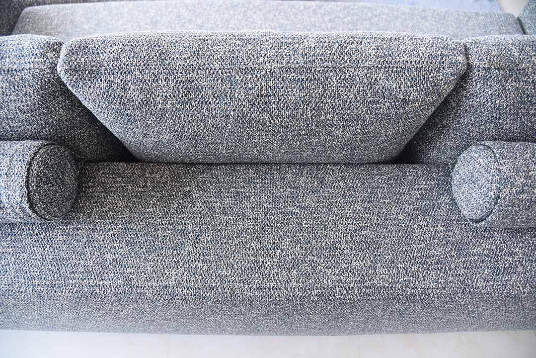 今回は両端の2つは円筒サポート付き背クッションで、真ん中のみ定番の背クッションで製作いたしました