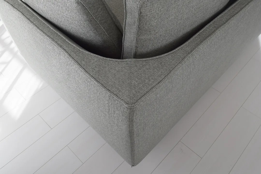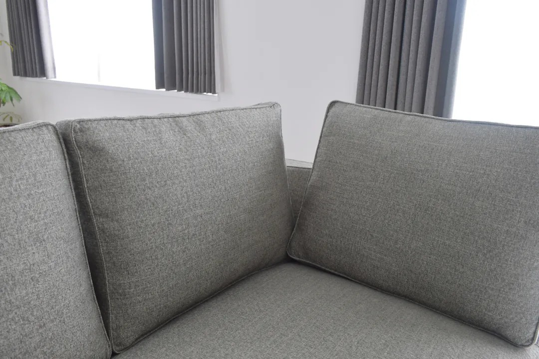 通常は角になっていることが多いコーナー部分は丸く加工してあり、斜めに背クッションを置いても快適に使用できるように製作してあります。コーナー部分に背クッションを置いて寛げます。