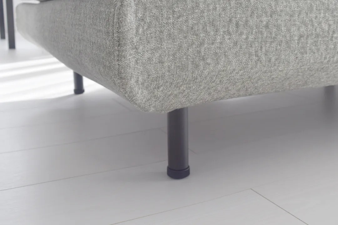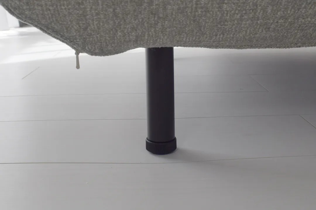 またTRES THE SOFA TAILORのソファはレッグデザインもいろいろ選べますが、F様にお選びいただいたのはアルミを削り出したシャープなレッグ。カラーは今お使いになっている家具に合わせてブラック色で製作させていただきました。