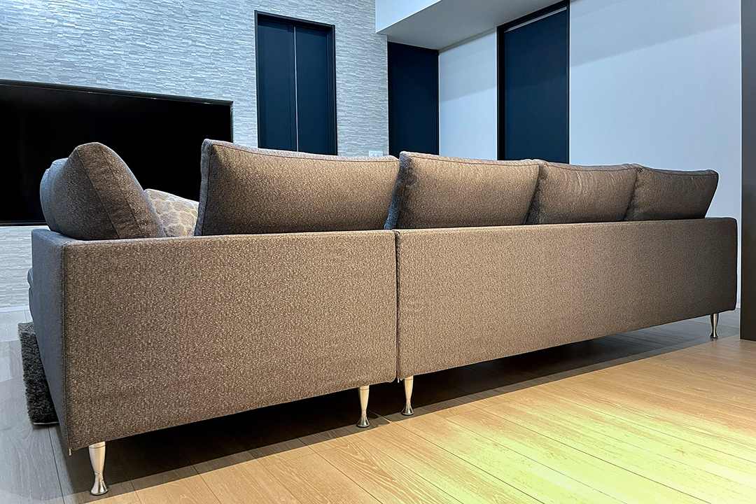 背クッションとソファ背もたれの間の陰影に注目です。