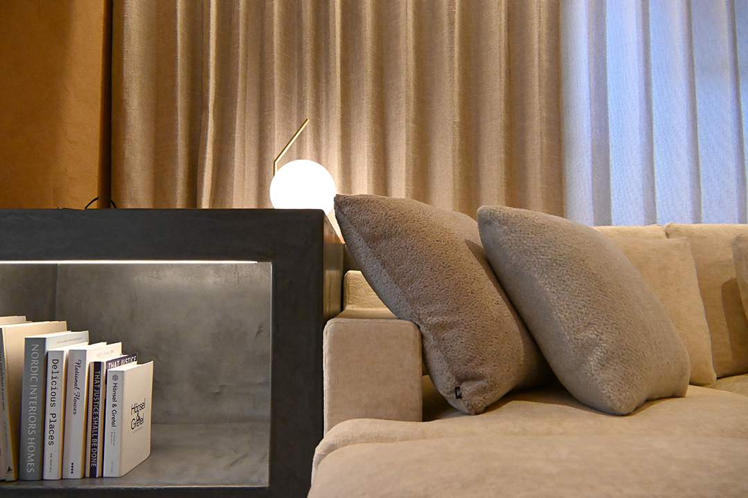 コントラストが互いを引き立て合い、あたたかみのあるリビングをイメージして