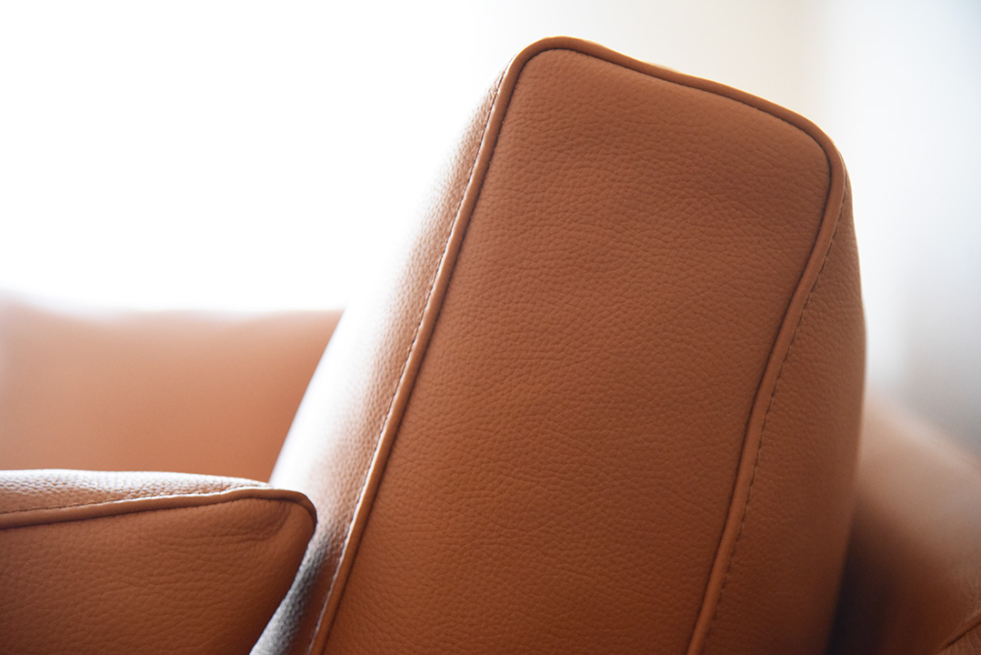 床とレザーカラーよりも少し暗めの色を入れることで、引き締まった印象に。