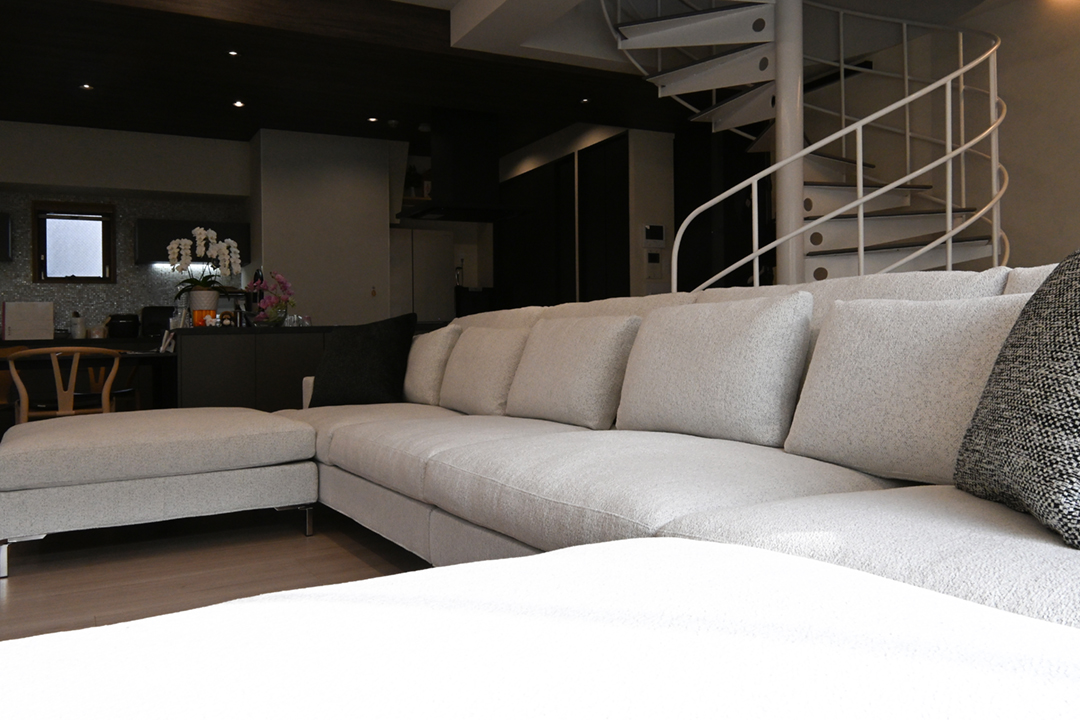 N様も、一旦は奥行きがもう少し浅い、スタイリッシュなsofa 【TB】を検討されていましたが、来店して各機種をお試しになるうち、日常的に使うN様ご夫妻が、一番くつろぎやすいソファが良いと、sofa 【GRVA】をお選びになりました。