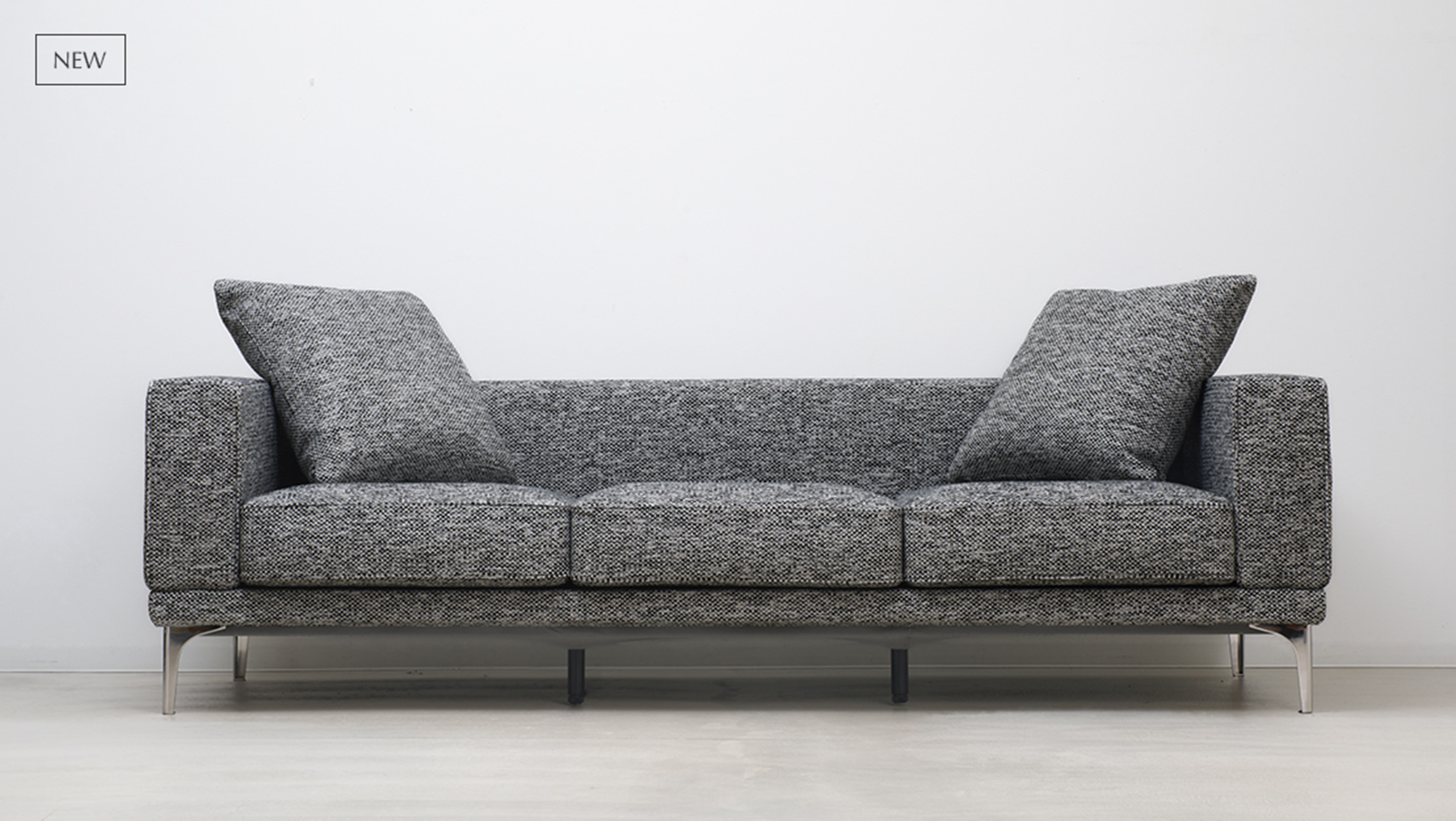モダンなフォルムが美しい一体型ソファ。 背から座へと流れるダブルステッチや、スタイリッシュな脚部など、細部まで計算されたアクセントが空間に洗練をもたらします。 そっと腰を下ろし、ゆったりと背を預ける。 低めに設計された背もたれが視線を遮らず、立ち上がって部屋を歩くたびに、その軽やかな存在感を実感できます。