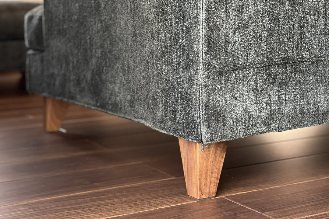 フローリングやテーブルの素材に合わせ、スタイリッシュなウォールナット脚部を選定されております。