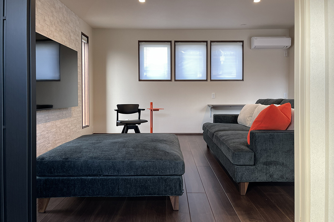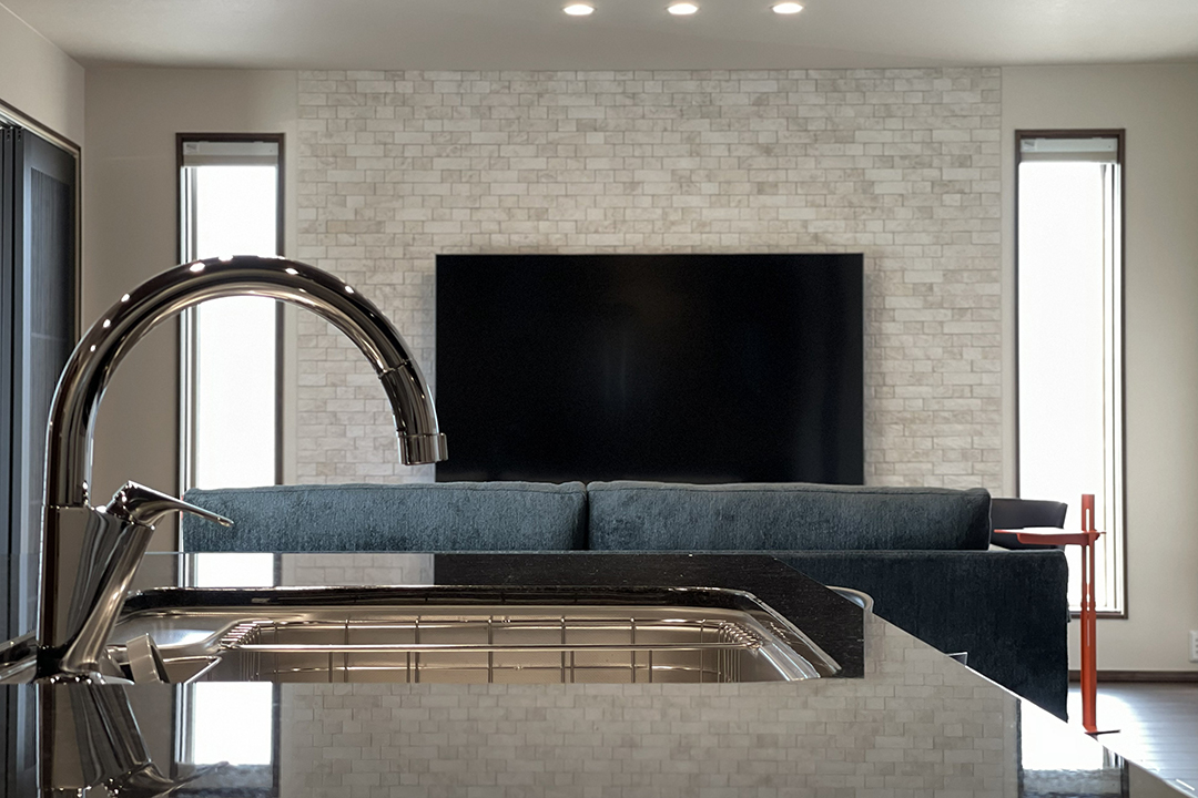 実は壁掛けTVの高さもご相談いただき、ソファの設置場所から相応しい高さをご提案させていただきました。