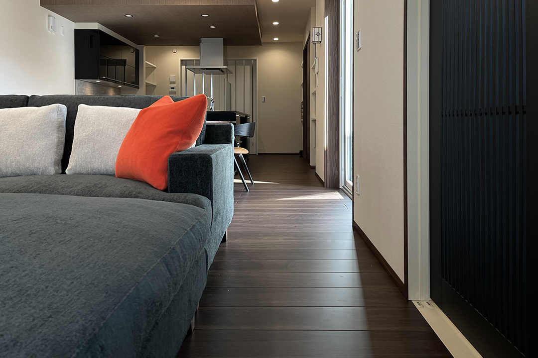 ソファ<GRVA>は床から背クッションまでの高さは80センチのため、アイランドに設置しても圧迫感が少ないです。