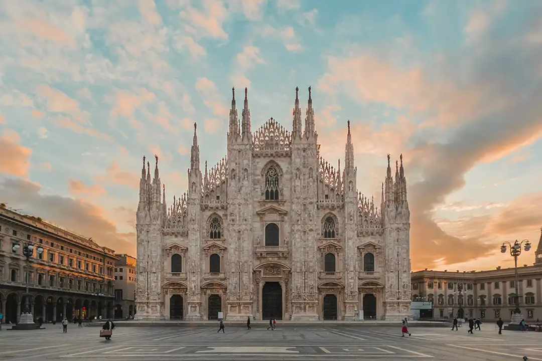 ドゥオーモ広場を歩けば、オリンピックの旗や装飾の名残がまだ街角に残り、