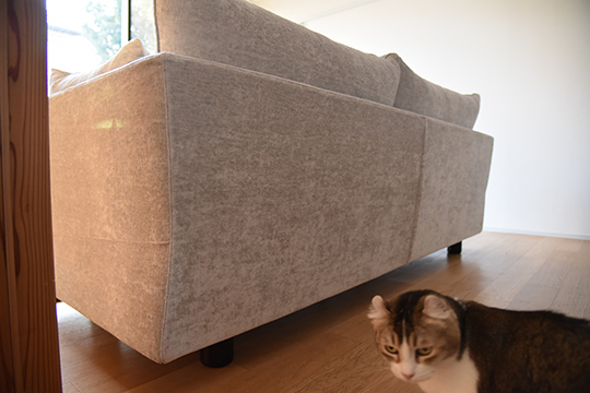 どうやら新しいソファが気になる様子です。